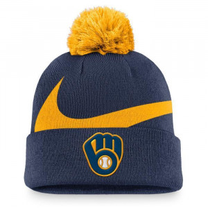 밀워키 브루어스 MLB 스우시 픽 커프드 니트 비니 모자 w/폼 by 나이키 > HATS